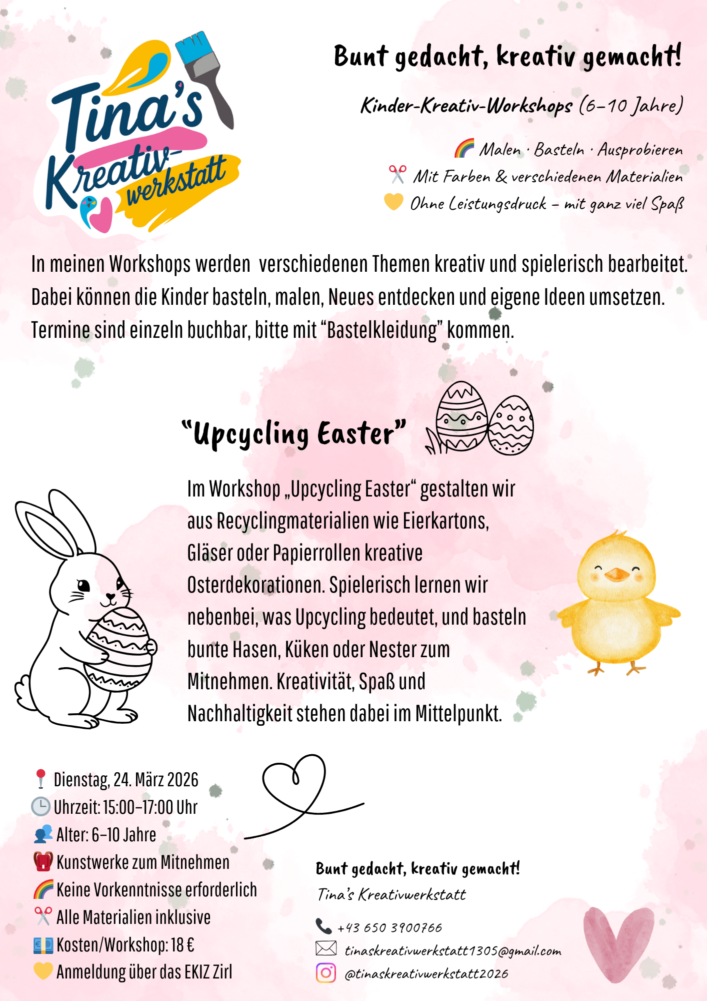 Spielerisch lernen wir nebenbei, was Upcycling bedeutet, und basteln bunte Hasen, Küken oder Nester zum Mitnehmen.